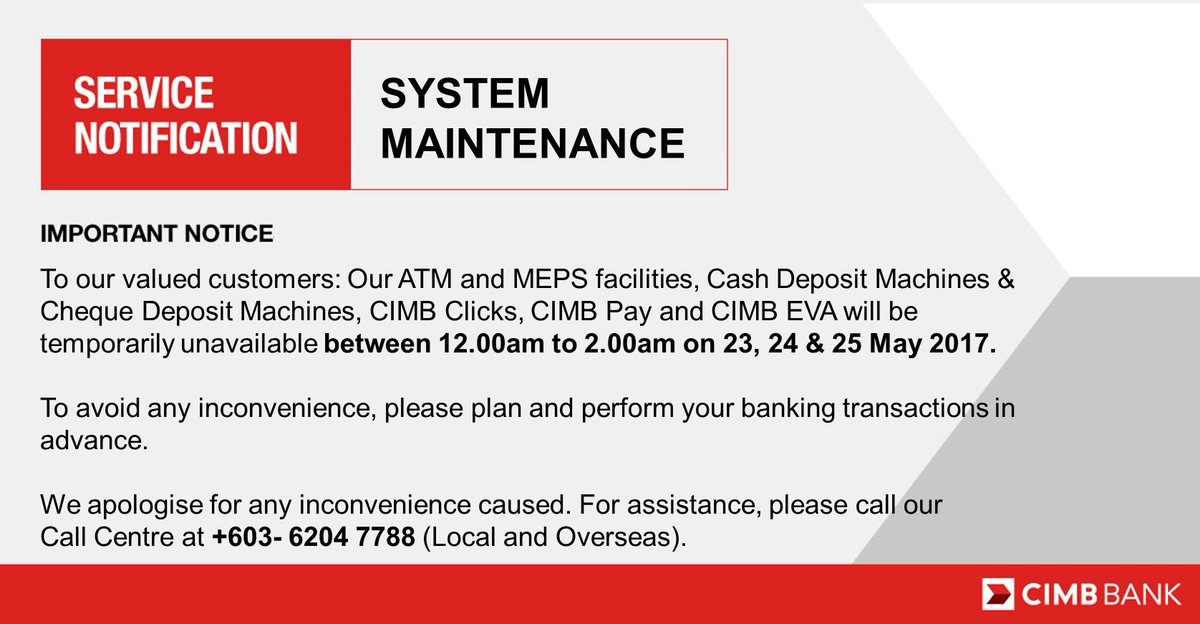 Related : Cimb Cheque Deposit Machine : We apologise for any inconvenience caused..