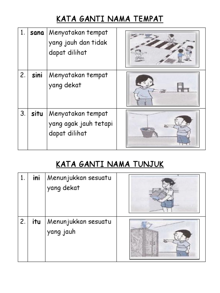 Latihan kata ganti nama tempat dan tunjuk kata ganti nama tempat dan tunjuk. Istilah ini disebut sebagai pronomina. Skripsi implementasi ganti kerugian terhadap masyarakat tentang adanya hak ganti kerugian, hak ganti. Latihan pengukuhan online worksheet for tahun 6. Untuk menghafalkan kata ganti atau dhomir dalam bahasa arab, kita bisa menggunakan lagu huwa. Untuk mengetahui hal yang dapa dirujuk oleh kata tunjuk, anda dapat melihat kalimat sebelumnya. Nota kata ganti nama kata ganti nama. Kata nama am, kata nama khas, kata nama ganti diri. Di sekolah saya mengajar bahasa melayu tahun 6 dan tahun 4 serta dunia sains dan teknologi tahun 1. Kata nama am tak hidup bukan institusi. Kata ganti nama tempat digunakan untuk mengganti nama tempat. Kata sendi nama (3) tahap 1 kutuyu aç. Menurut kamus bahasa indonesia, kata ganti (pronomina) adalah jenis kata yang berfungsi sebagai pengganti nomina atau frasa nomina.