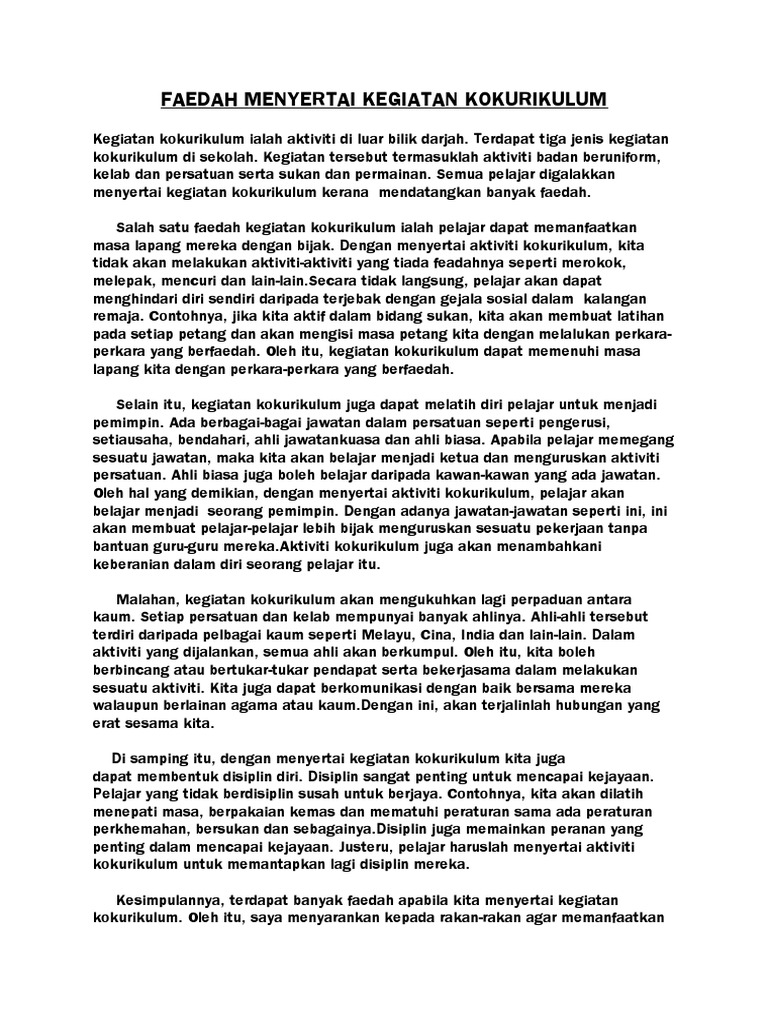 Related : Faedah Menyertai Kegiatan Kokurikulum : Upsr Karangan Latihan Www Sjkckungman Edu My : Semua pelajar digalakkan menyertai kegiatan kokurikulum mendatangkan banyak faedah..